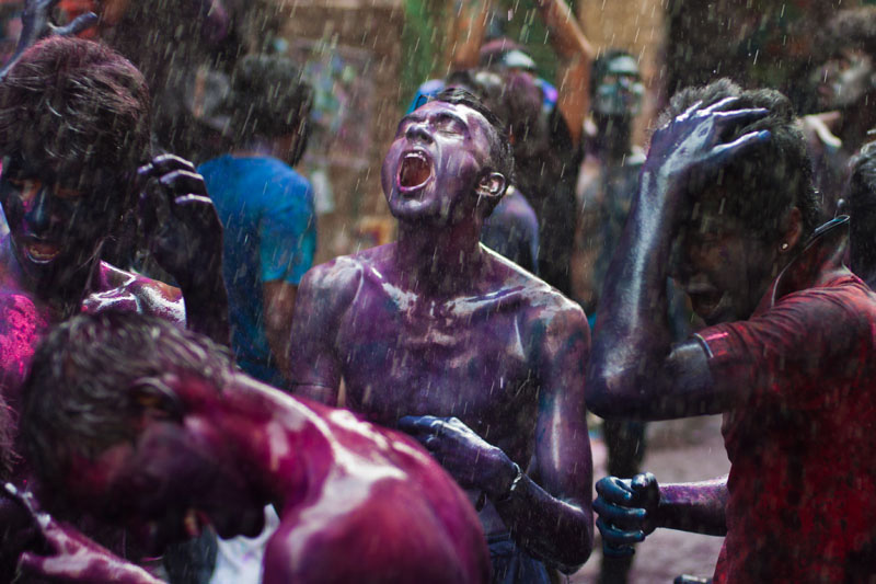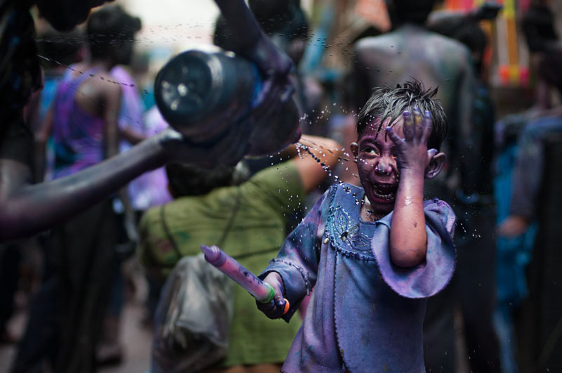 Holi, a Hindu spring festival, being celebrated in Old Dhaka, Bangladesh. 2012